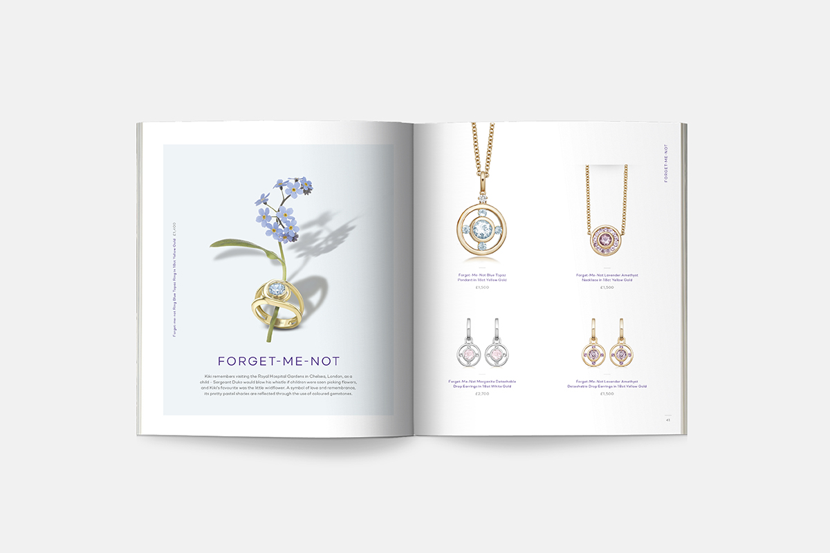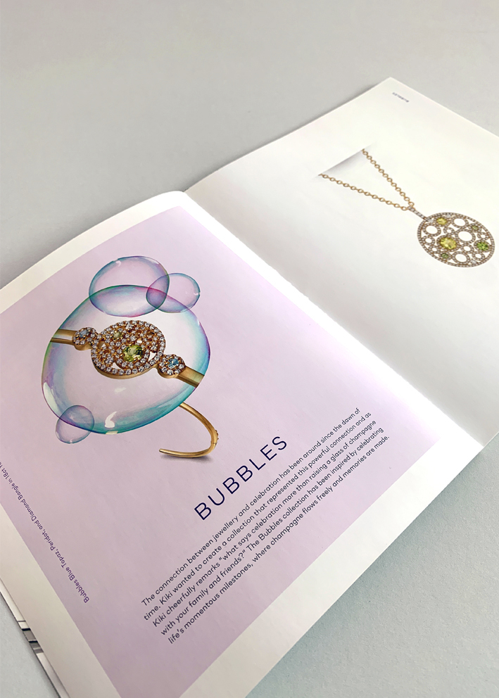 It’s always a pleasure to work with a client with impeccable taste. Kiki has long been renowned for her wonderful jewellery so it was fantastic to be commissioned to create their 2020 catalogue. A thorough creative process was carried out with a range of initial routes presented. A clean but playful layout was chosen along with engaging ‘collection’ break pages. We wanted to give each collection it’s own personality whilst ensuring the catalogue was clearly on brand. The page designs have also helped towards creating memorable content for their social media platforms.