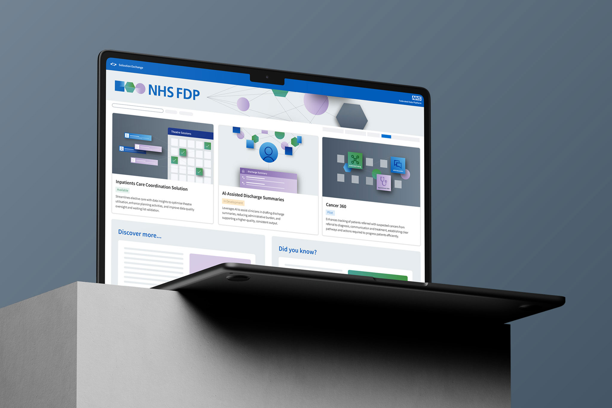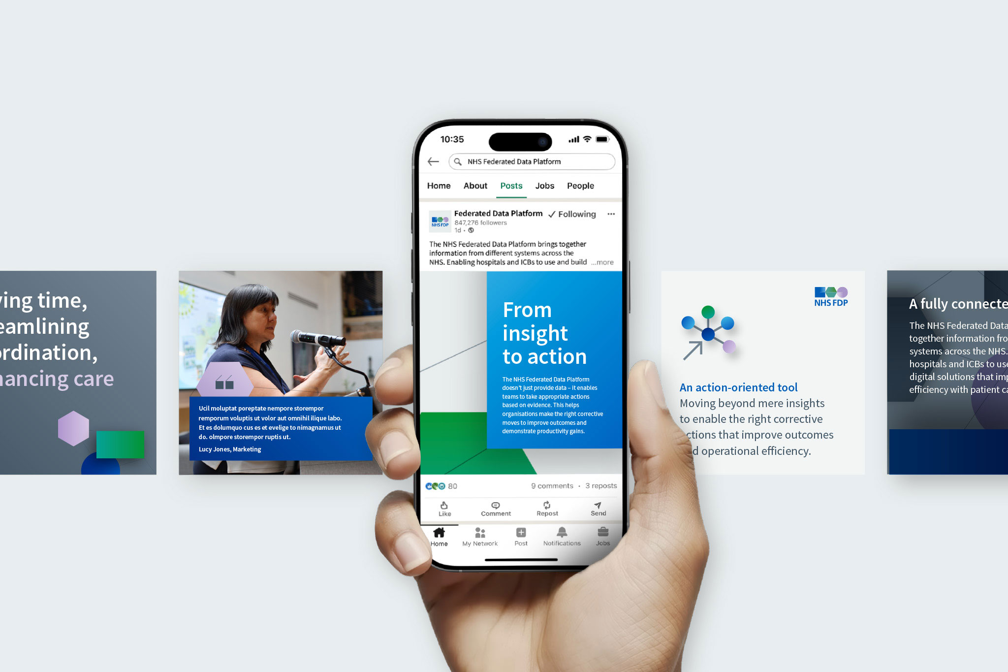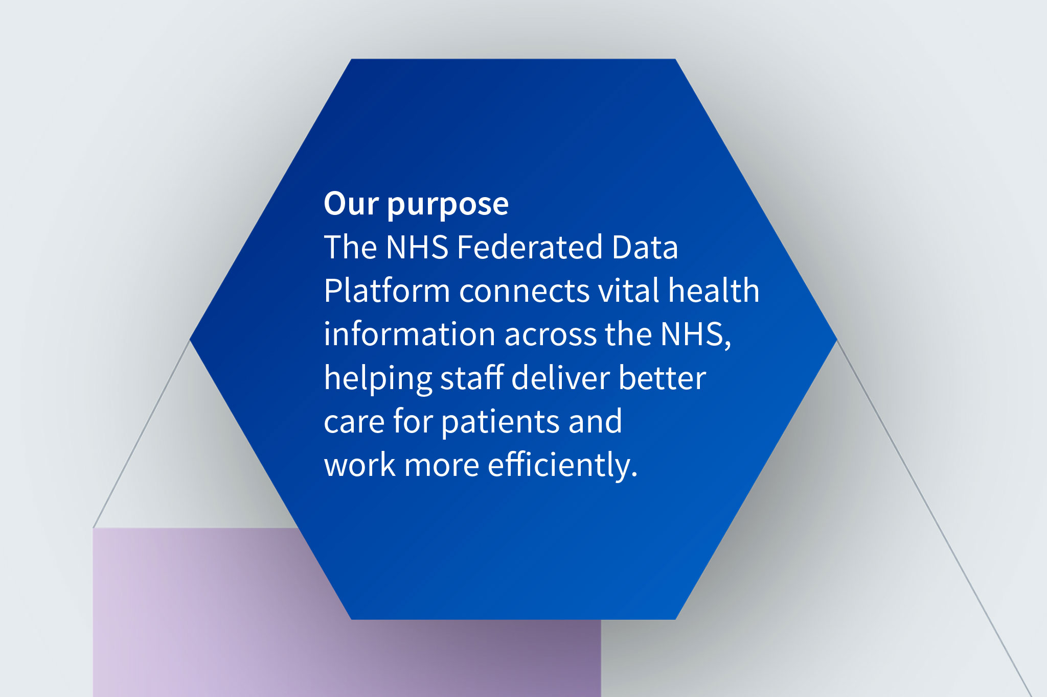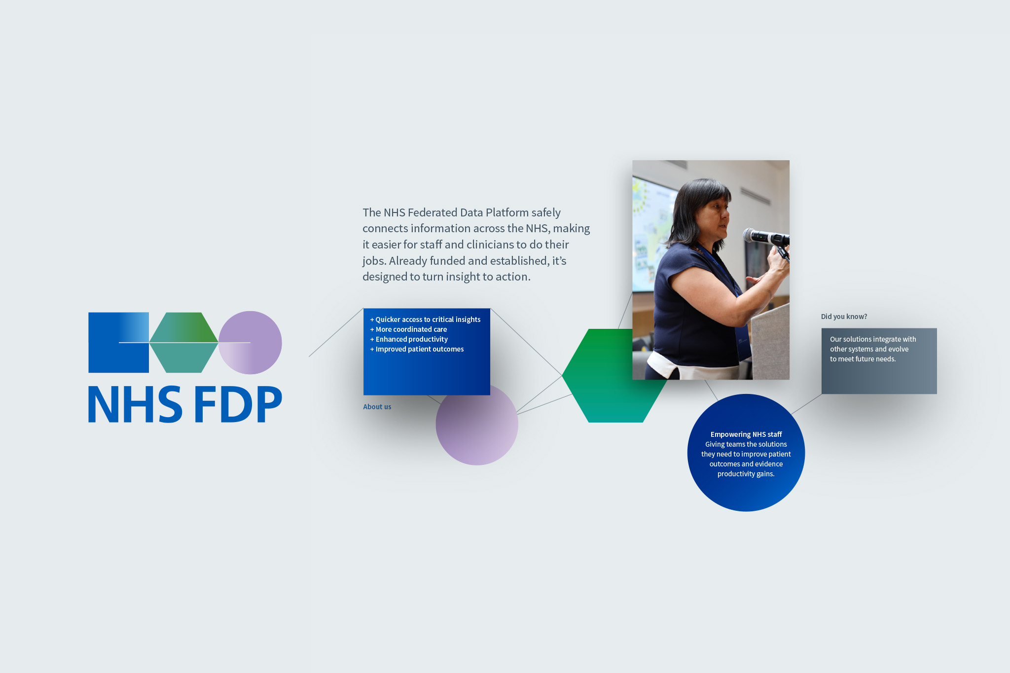 The NHS Federated Data Platform connects vital health information across the NHS, helping staff deliver better care for patients and work more efficiently. Our brief was two fold. Develop a narrative that clearly explains the importance of the NHS FDP and its role in the UK health system. Secondly, we needed to create a visual identity to align with this narrative. No more information silos – a fully connected NHS.