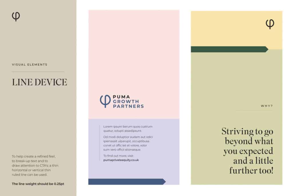To create, develop and deliver a brand for the entire Puma Group. This would include Puma Investments, Puma Private Equity and Puma Property Finance. A brand that was broad enough for each part of the group to present their own stories and personality, but strong enough that it always looked like it was built from the same foundations.